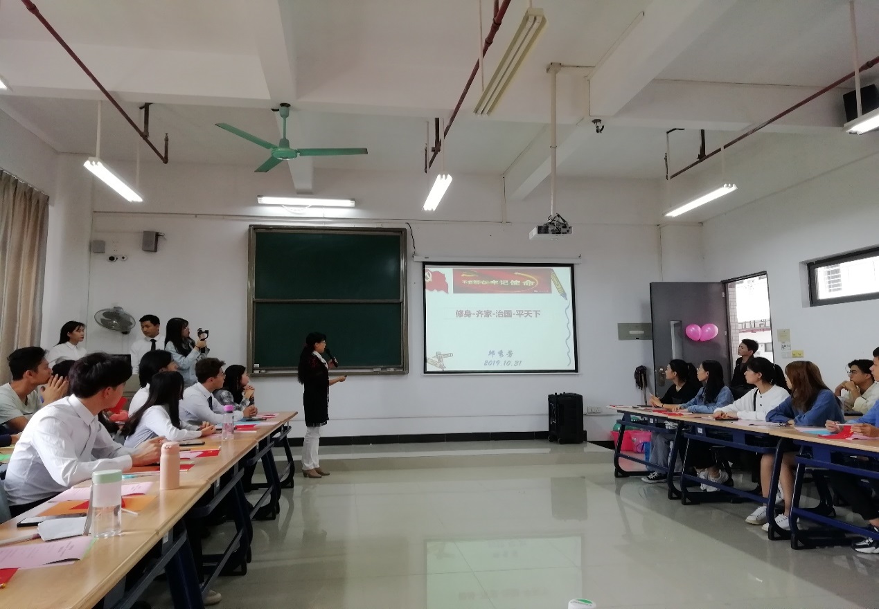 邱秀芳院长以“修身、齐家、治国、平天下”为主题,引用习近平主席的话“青年一代有理想,有担当,国家就有前途,民族就有希望,实现我们的发展目标就有源源不断的强大力量。”启发同学们珍惜当下在大学的美好时光,养成平时热爱看书的习惯,努力获取知识,提升自己的职业技能,培养良好的文化素养,不辜负青春韶华,为实现中国梦而奋斗。