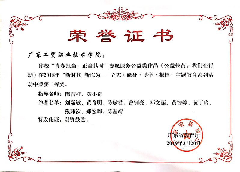 2019年参与《助力精准扶贫——“三联三引”电商专业群实践教学体系研究与实践》获省教学成果二等奖