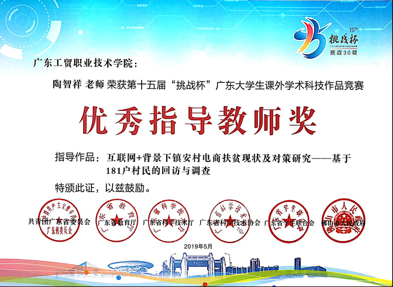 2019年挑战杯广东学生课外学术科技作品优秀指导教师奖