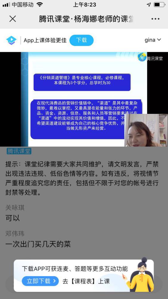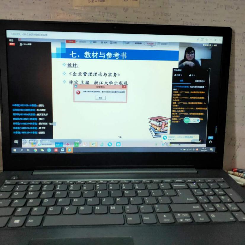 经贸学院的领导班子和兼职督导14人,第一时间纷纷进入直播课堂观摩、学习,并在微信群里发送听课感言和直播截图,人人都在惊叹经贸学院的老师们强大的直播和控堂能力。他们用优慕课平台、腾讯课堂、钉钉直播等多个平台齐头并进,隔屏互动、提问、答疑、练习,内容丰富,形式多样,轻松自然,没有断片,没有掉链子,气场完全不输知名主播,也完全不被偶尔尴尬的网络所限制,让同学们如同身临其境一般徜徉在传播知识的殿堂里。
