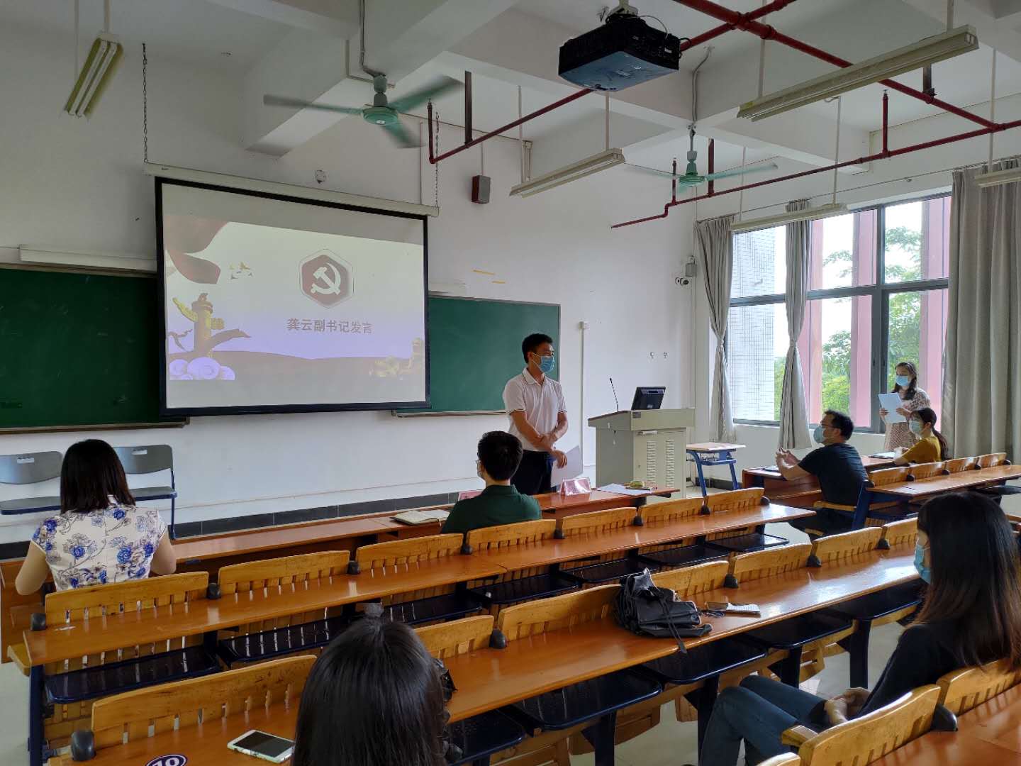 为弘扬爱国主义精神,进一步激发师生们的昂扬斗志,勉励这批学子认真备赛,5月26日下午,经贸学院党总支举办了一场简单而隆重的升旗仪式暨技能竞赛、互联网+比赛动员大会,以特殊的方式上好新学期开学“第一节思政课”。经贸学院党总支书记李繁、党总支副书记龚云、办公室主任邓彩云、学工办主任黄小奇,以及全体辅导员和经贸学院首批返校的26位同学出席本次会议,会议由黄小奇同志主持。