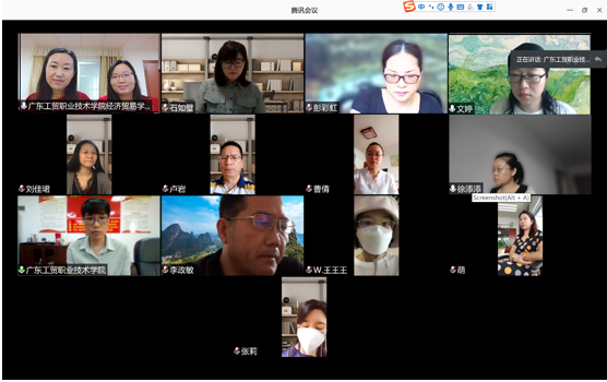 为了加快学院内涵建设的步伐,提高专业群协调发展的水平,经贸学院于2020年6月18日上午组织召开了国贸专业建设与发展研讨会。邱秀芳院长、方洁副院长、商贸系主任蒋晶及其他11位老师在腾讯会议平台参加了此次视频会议。