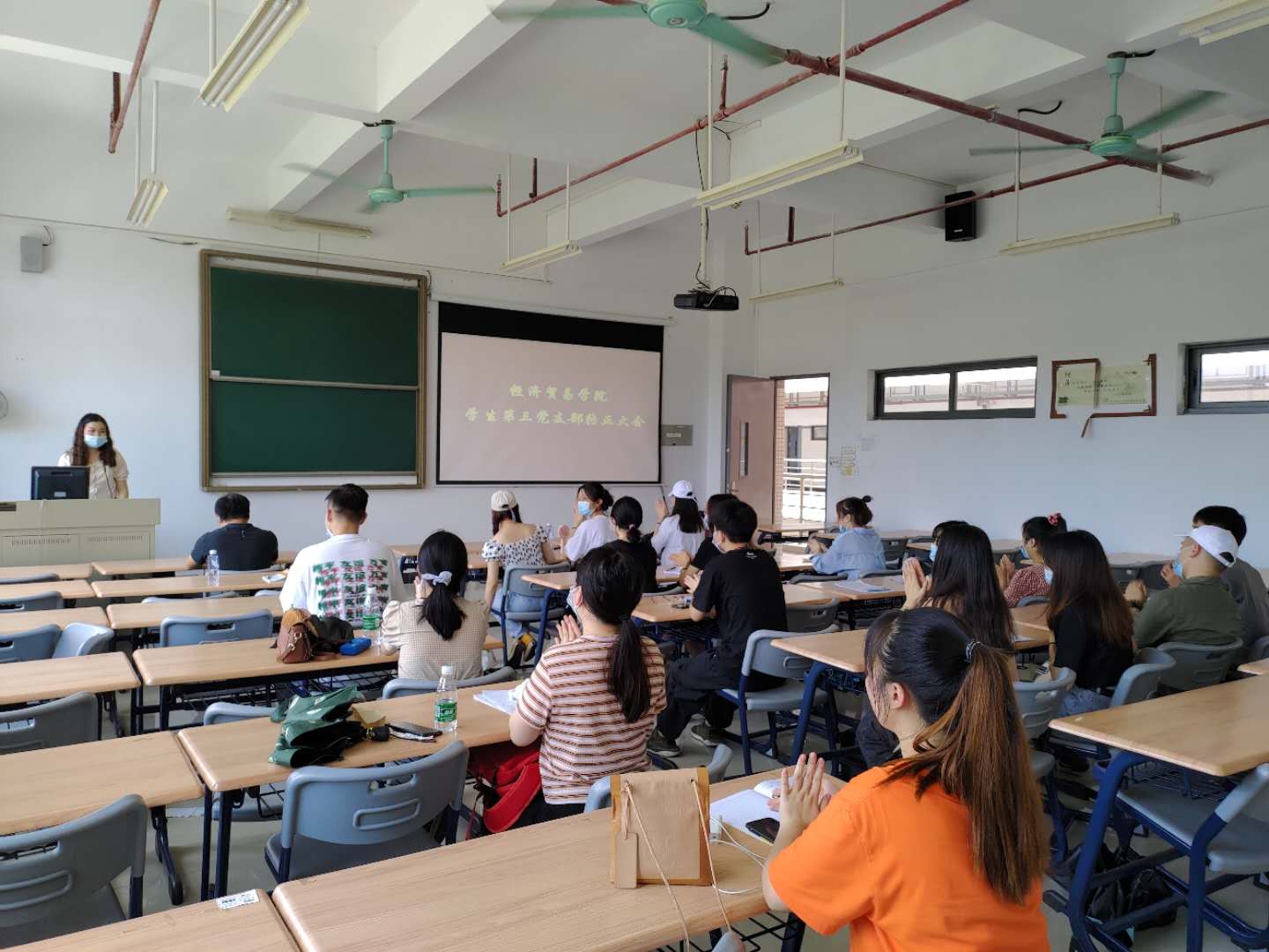 会后,毕业班党员参加在校期间的最后一堂思政课。