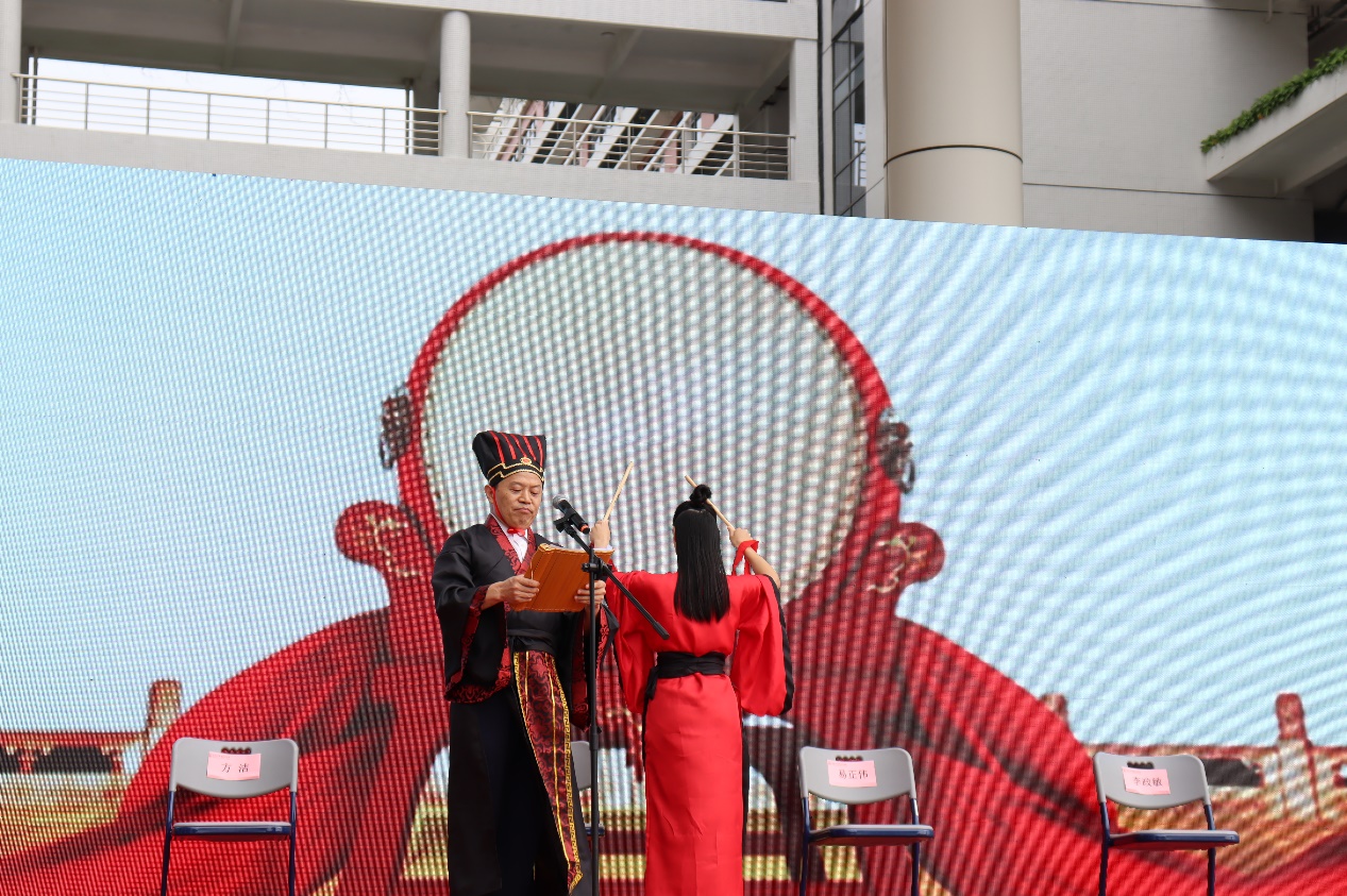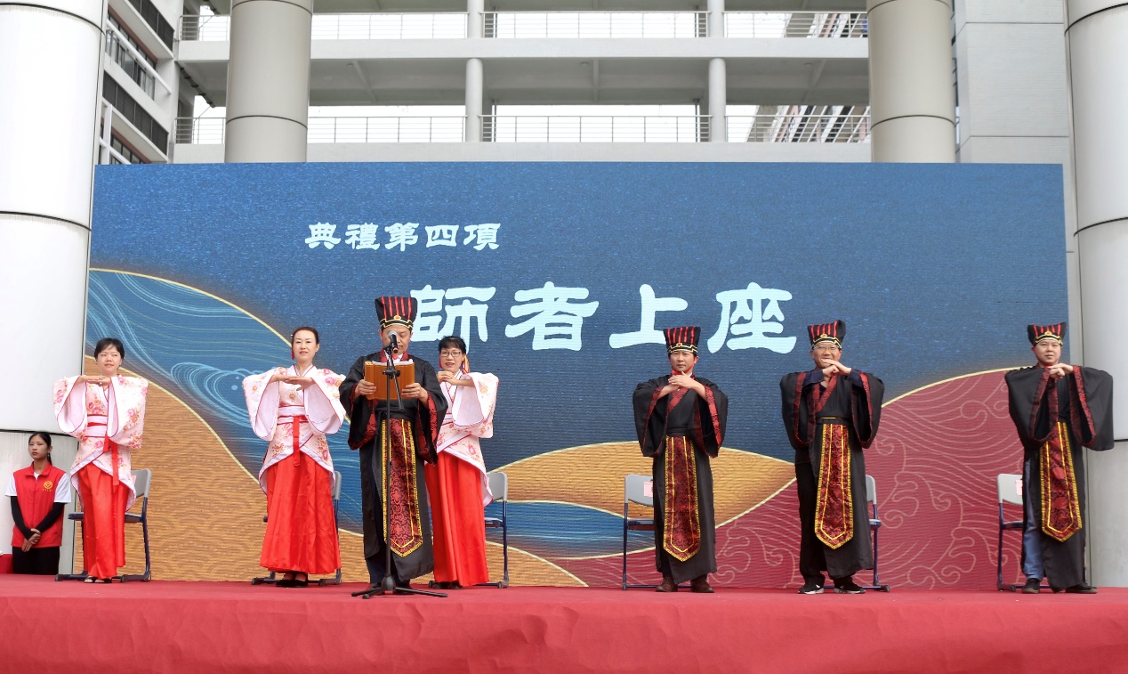 典礼上,党委委员、学校副校长陈珊兴致辞。他指出,教育引导同学们尊师重道,知书学礼、勤奋学习,是当代教师的职业使命,希望同学们能够通过接受优秀传统文化教育,学会感恩。