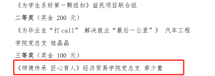 转眼间,2020年已经接近尾声,经贸学院的好消息可向来不会停下脚步。近日,根据《关于表彰2020年师德建设优秀征文和优秀微视频的决定(粤工贸院党宣〔2020〕14号》精神,在学校开展师德建设活动中,陈中明、冯玥怡、徐添添三位老师分别获得“淬炼师德师能,践行育人使命”主题征文的一、二、三等奖,章少重老师获得主题微视频三等奖。值得一提的是,因为组织有力,学院成为参赛作品最多,获奖数量最多的单位,学院也因此荣获优秀组织奖。