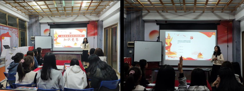此次知识竞赛活动采取抢答方式答题,以中国共产党发展历程、重要人物、重大历史事件等为主要内容,有单项选择题和填空题,旨在考察学生党员的党史知识积累。活动中,各支部同志团结合作、踊跃答题,积极投身到知识与头脑的交锋当中。活动现场时而严肃紧张,时而活泼有趣,充分展现出经贸学生党员同志积极进取的精神面貌。