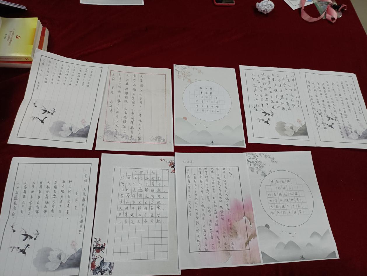 书写现场党员认真研读,专心撰写,并且分享了诗词的主要内容和学习心得。在体验中华汉字结构造型之美、感受中华文化博大精深的同时,重温了红色诗词的深邃意境,更加坚定了“不忘初心、牢记使命”的决心,努力为人民谋幸福,为民族谋复兴。
