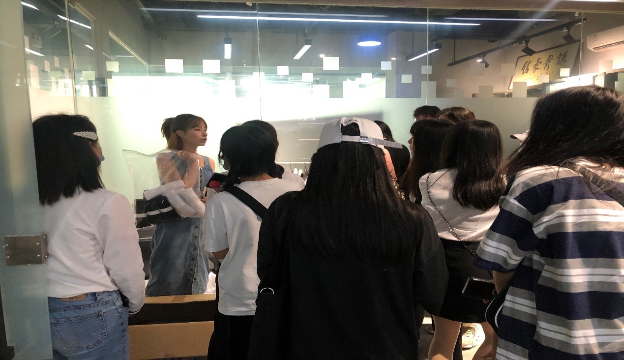 4月17日、18日,双休日,市场营销系彭娟老师、杨海娜老师和冯玥怡老师带领参加此次创业大赛项目的同学奔赴位于广州市白云区同康路的小象奔腾电子商务有限公司公司总部,开始本创业项目的第一期培训。公司渠道部李经理全程负责培训,李经理首先向同学们介绍了公司的简况、此次参赛的大赛规则、奖励方案,接着向学生进行公司产品的介绍,让学生对即将销售的产品拥有全面的了解;第三部分是给学生介绍抖音店铺的基本运作模式,让学生明确一个抖店主要的工作内容。培训结束后,李经理对现场的同学进行分组,分组采用自愿组合的方式,最终一共产生了八个抖店小组。最后,每个小组挑选一件上装,一件下装,李经理给每个小组布置了近期的工作任务——给小组挑选的服装做抖店详情页。小组需在下周二之前将详情页发给公司相关负责人员,审核通过之后,就开始正式的销售工作。