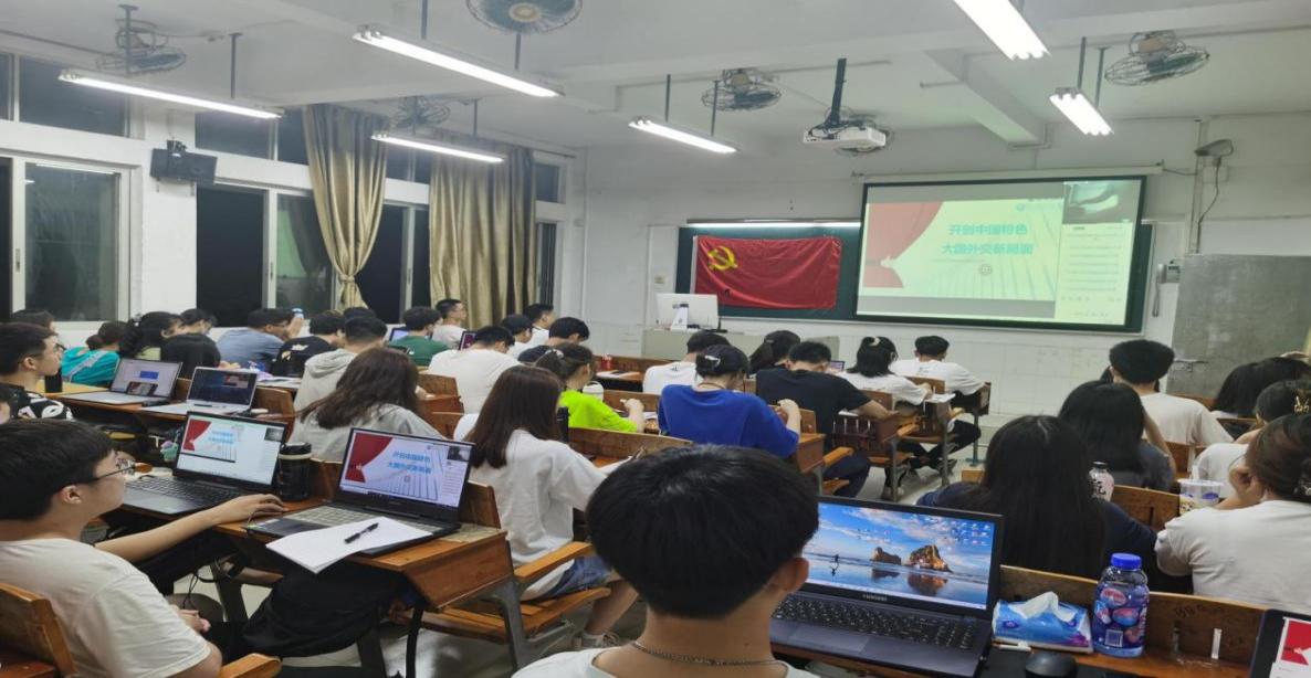 贾云飞从中国外交取得新成就、习近平外交思想、中国外交开创新局面三个方面生动讲述了面对“世界怎么了,我们怎么办”这一时代之问,以习近平同志为核心的党中央引领中国外交,谱写中国特色大国外交新篇章。新时代,中国秉承着“中国特色大国外交”的理念,在国际上更加积极地发挥负责任大国的作用,牢牢把握服务民族复兴、促进和平发展这条线,以实际行动推动人类命运共同体的建设,向世界各国展现中国特色外交的风范。同大国关系保持总体稳定,同周边国家关系持续向好,伙伴关系深入推进,国际朋友圈不断扩展。