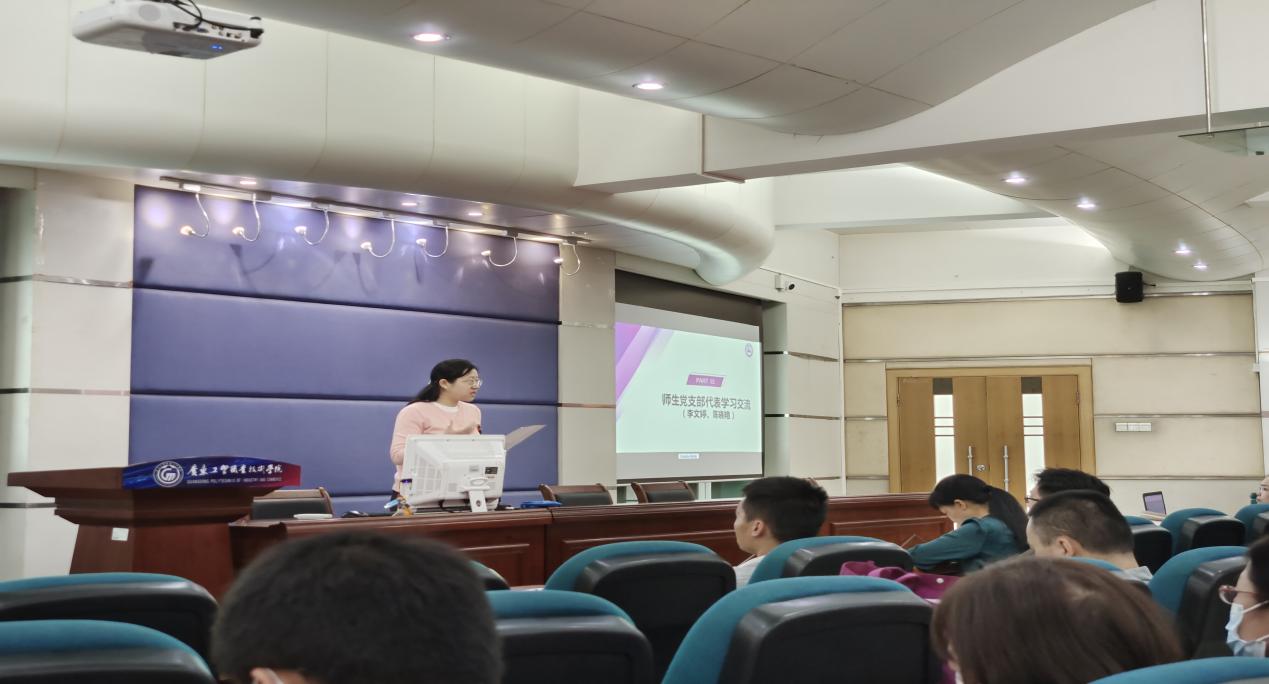 会上,教师党员代表李文婷做学习心得交流。李文婷表示,在工作中要将党史学习的感悟融入到工作中,持续增强“四个意识”、坚定“四个自信”、做到“两个维护”。作为一名党员,要知使命、明责任、有担当。坐而论道,不如起而行之,广大教师要让工作的“主轴”围绕大局转动,将思想政治教育工作融入日常教学当中,积极主动做好课程思政,以课程思政推进高水平人才培养体系建设。