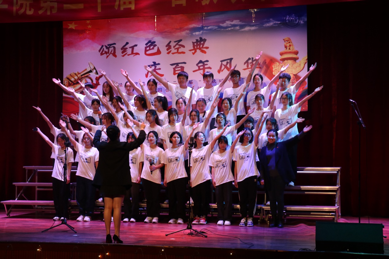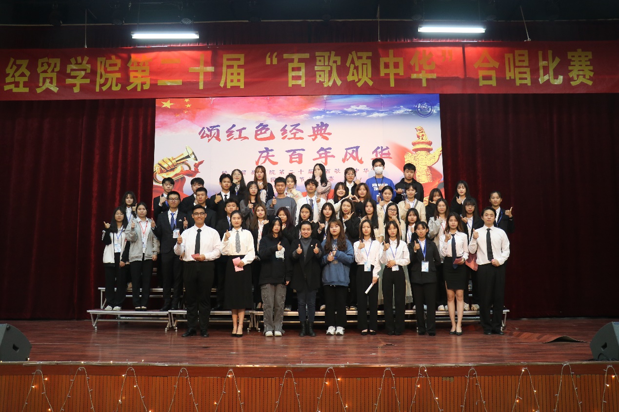 为了深入学习宣传贯彻习近平新时代中国特色社会主义思想和党的十九大精神,落实全国教育大会精神和全国全省高校思想政治工作会议精神,围绕立德树人核心,构建“三全育人”大思政格局,推动党史学习教育取得实实在在的成效,以实际行动献礼党的百年华诞。2021年12月15日下午,由经济贸易学院举办的第二十届“百歌颂中华”校园合唱节选拔赛在白云区演艺厅里隆重举行。出席本次合唱比赛的嘉宾及评委有:经济贸易学院党总支书记李繁、学院学工办全体老师、学院第十五届团委、学生会、飞久音乐社代表等。