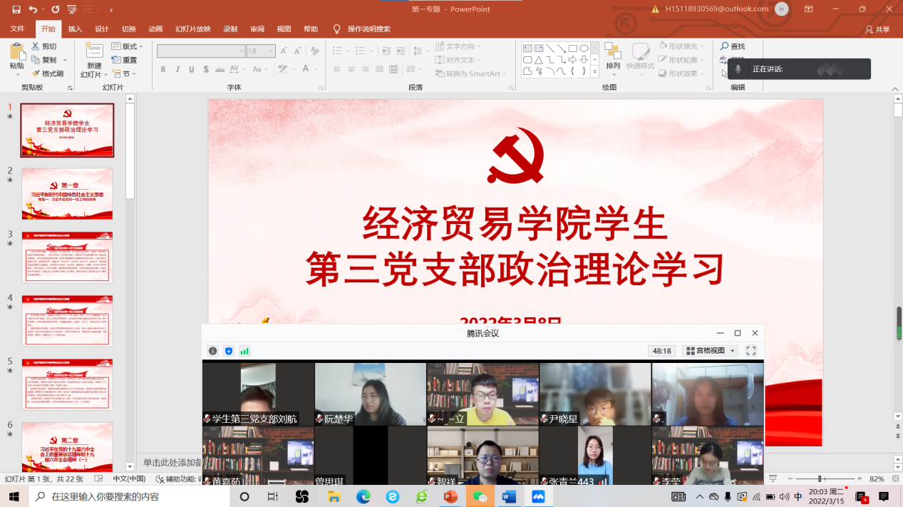 3月16日,经济贸易学院学生第一党支部、学生第二党支部、学生第三党支部采取线上加线下的形式学习了两会精神,会议分别由支部书记吴海英、陈晓艳、陶智祥主持,支部全体党员及入党积极分子代表参加了学习。