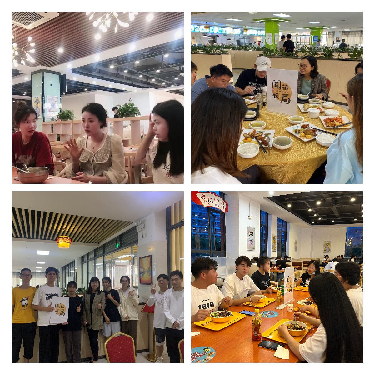 5月开始每天的午餐或者晚餐时间,师生之间亲切围坐在餐桌前、自由交流沟通。本次闻韶饭局中,经济贸易学院党总支书记李繁,院长邱秀芳,经贸学院党总支副书记龚云,副院长蒋晶带头参加,经贸学院全体教师与全体班级代表参与。