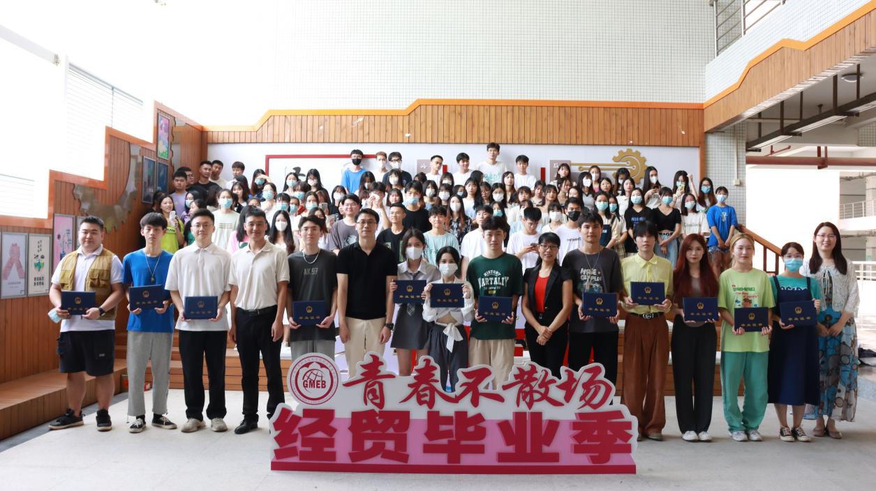 典礼最后,学院领导为毕业生颁发毕业证书,大家齐唱校歌《放飞梦想》,用嘹亮的歌声,表达了自己“寻真求是,格物致知,工贸精神激励成长”的凌云之志,至此经济贸易学院2022届毕业典礼在悠扬的歌声中圆满结束!