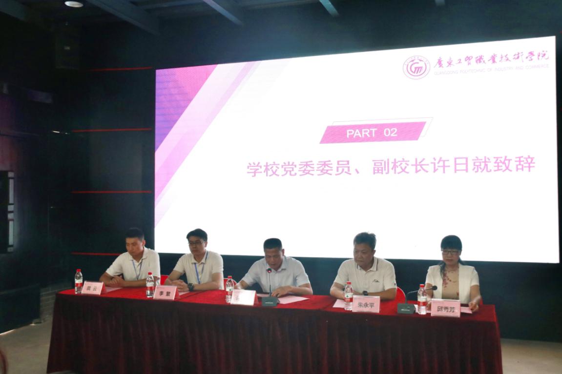 8月14日上午9点,我校在广州从化罗洞工匠小镇广乐府一楼会议厅举办了2022年中职班主任能力提升(国培)培训班的开班典礼。出席典礼的校内领导包括学校党委委员、副校长许日就,继续教育与培训学院院长朱永平,经济贸易学院党总支书记李繁,经济贸易学院党总支副书记、院长邱秀芳,经济贸易学院党总支副书记龚云,经济贸易学院办公室主任邓彩云,经济贸易学院学工办主任黄小奇,经济贸易学院辅导员章少重,经济贸易学院辅导员王祥至,来自广东省湛江卫生学校和湛江财贸中等专业学校的104名学员以及国培项目工作组全体成员参加了开班仪式。会议由经济贸易学院刘佳珺老师主持。