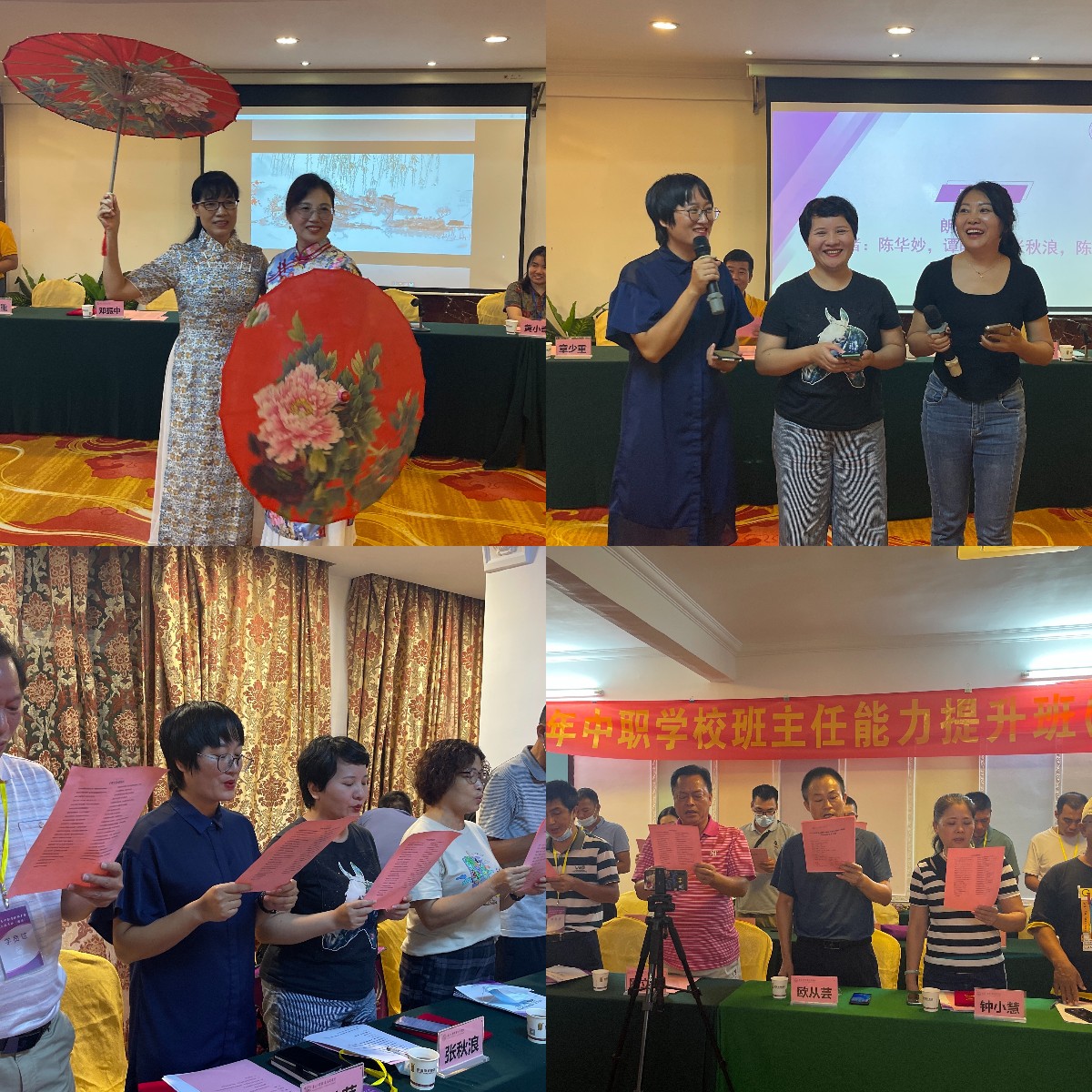 8月26日下午19:00,2022年中职学校班主任能力提升班(国培)的结业典礼在从化财富度假酒店会议室举行。来自广东省徐闻县职业高级中学的48名中职学校班主任顺利圆满完成了培训学习任务。出席本次典礼的领导的嘉宾有经济贸易学院党总支副书记、院长邱秀芳,经济贸易学院办公室主任邓彩云,经济贸易学院学工办主任黄小奇,辅导员王祥至、章少重。本次会议由邓彩云主任和徐闻县职业高级中学主任邓振中共同主持。