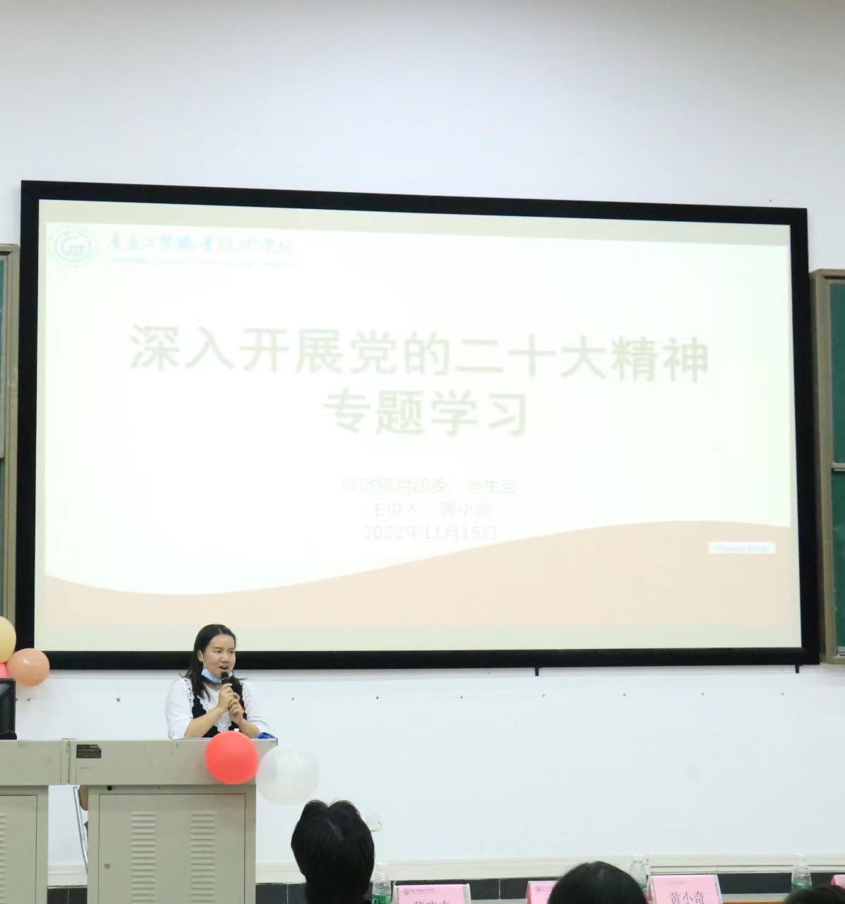 根据学校党委《开展党的二十大精神宣讲行动的实施方案(粤工贸院党字〔2022〕59号)》的通知精神,11月15日晚上19时,经贸学院全体团干、学干在学校党的二十大精神宣讲团成员、经贸学院团委书记黄小奇的带领下,深入学习了党的二十大精神。
