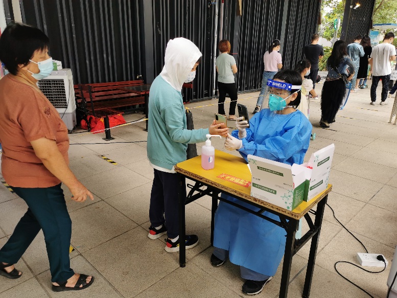 辅导员吴海英同志在兼顾居家办公与线下办公的同时,积极联系居住地社区党组织做好核酸现场秩序维护、引导信息填报、查验健康码、测温、录入核酸人员信息、特殊群体帮扶等工作,同时加入社区网格党支部,积极参加核酸检测服务,每次服务时常3小时以上。