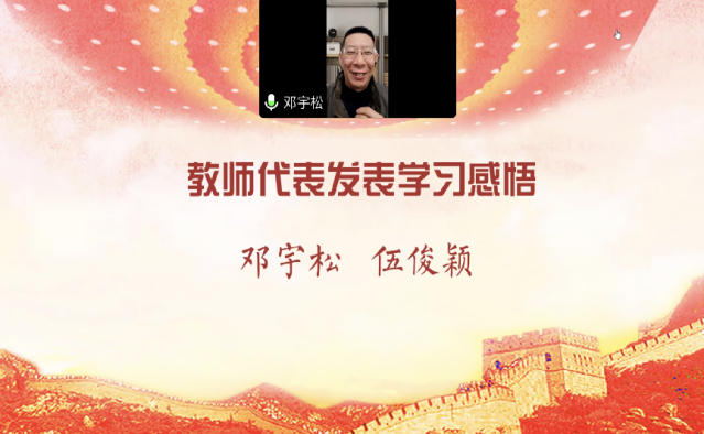 支部党员教师邓宇松老师和入党积极分子伍俊颖老师分别发表了学习感悟。邓宇松提到,作为一名职业教育工作者,要从自身做起,把学习好宣传好贯彻好党的二十大精神作为当前和今后一个时期的首要政治任务,并通过“深化学习”、“深入宣传”和“深刻领会”三个“深”原则,将学习贯彻党的二十大精神落到实处。伍俊颖则提到,要坚定信仰,以党的二十大精神为引领,以理论制度为引领,以良好的师德师风为引领,牢记使命,不忘一名普通的教师的初心。把党的二十大精神与教育教学实践相结合,创新教学思维,开展课程思政,为社会主义教育事业添砖加瓦。