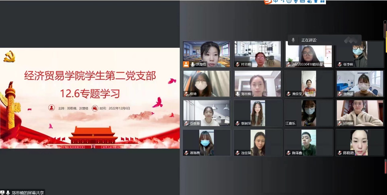12月6日,经济贸易学院学生第一党支部、学生第二党支部、学生第三党支部分别采取线上的会议形式收听观看江泽民同志追悼会、《习近平谈治国理政》第四卷、习近平在党的二十大上的重要讲话精神和党的二十大精神,并结合理论开展业务学习。会议由支部书记吴海英、陈晓艳、陶智祥主持,支部全体党员参与了学习。