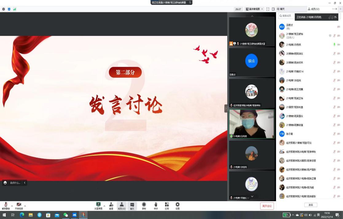 为了深入学习贯彻党的二十大精神,进一步加强对发展对象的培养教育,根据学校党委组织部的统一部署,经贸学院2022年第二期发展对象培训班于12月14日召开了深入学习宣传贯彻党的二十大精神学习小组讨论会。