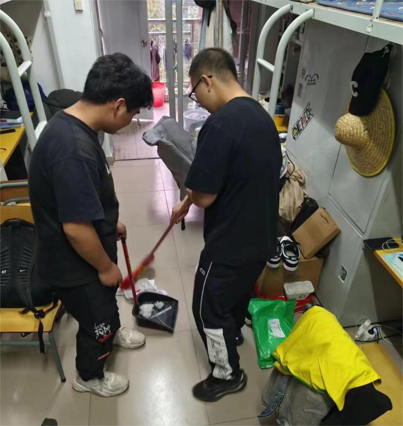 宿舍是我家,卫生靠大家。在生活委员以及宿舍长的组织下,各宿舍积极地进行大扫除工作,清洁地面,有序摆放生活用品,清理阳台的杂物,齐心协力将寝室打扫干净,整个宿舍整洁如新。同学们纷纷表示,通过打扫宿舍卫生不仅改善了自身生活的环境、还激发出创造美好寝室环境的内在动力。宿舍大扫除活动不仅仅为同学们营造出更好的学习生活环境,更是展现出同学们热爱劳动、团结互助的良好精神风貌。