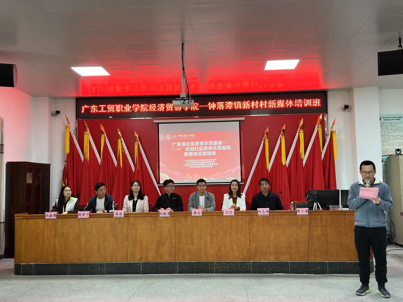 为深入学习贯彻习近平新时代中国特色社会主义思想,贯彻落实党的二十大精神,落实教育部《关于进一步推进社区教育发展的意见》和省教育厅《关于大力发展社区教育推进学习型社会建设的意见》,3月5日上午,由太阳集团城官网1407经济贸易学院、钟落潭镇新村村委、广州市白云区供销合作联社、广州大洋教育科技股份有限公司四方合力打造的“1+N”双创社区教育示范基地新媒体运营培训班开班仪式在新村村委党员活动中心顺利举行。这也是广东省职业典型培训项目“全栈运营,逐梦再启航——新媒体运营培训”的新村村专场培训。经济贸易学院党总支副书记龚云、钟落潭镇新村村党总支副书记刘敏勇、经济贸易学院副院长蒋晶、广州大洋教育科技股份有限公司总经理周黄宁、广州市白云区供销合作联社社工冯嘉樱,以及培训班导师、学员50余人出席了开班仪式。