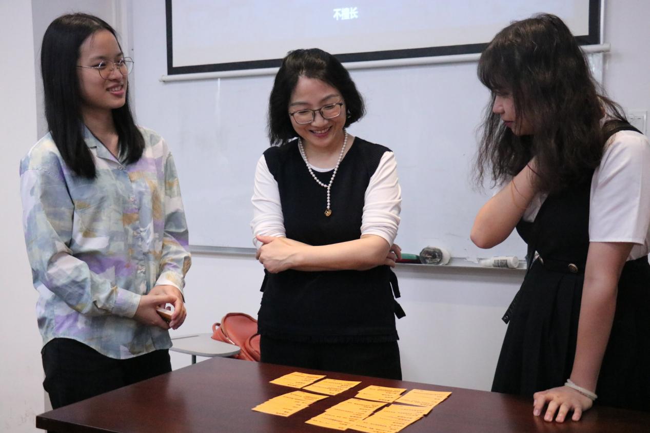 讲座伊始,由“荔枝青年”会长张玉玲与同学们进行个人优势卡牌游戏。通过同学们对卡牌的分类,张玉玲有效地给予同学们优良的就业方向及分析就业形式。