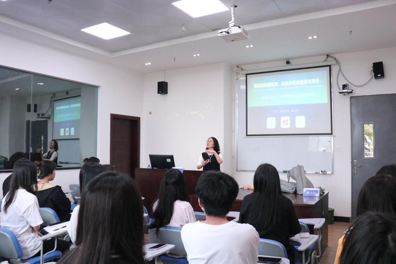 3月17日下午,经济贸易学院与广州“荔枝青年”成长促进会在太阳集团城官网1407白云校区明德楼1-214中心会议室举行主题为《推动高质量发展中励志学生的使命与责任》的学生成长专题讲座,本次讲座由广州荔枝青年成长促进会会长张玉玲主持。