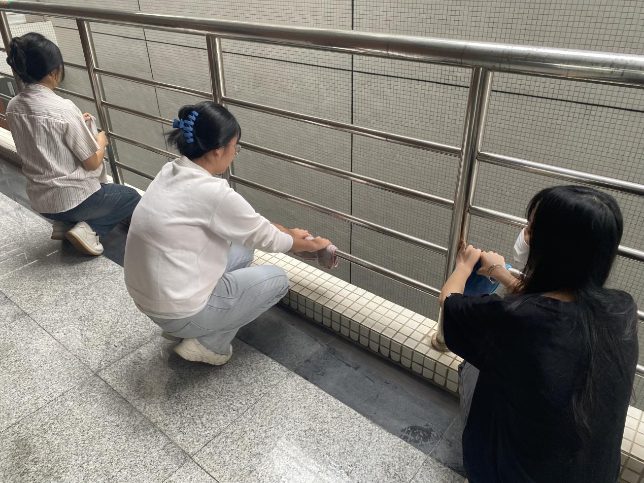 本次社会实践活动校内进行,主要内容是维护和清洁教学楼的卫生环境基础设施。活动以小组的形式开展,一共分为五组,学员们在得知自己的分工后迅速进入指定区域进行打扫,扫地、拖地、清洁抽屉垃圾、摆放桌椅、擦拭围栏等,在学员们的共同努力下,教学楼焕然一新,为全校师生了营造良好的教学环境。