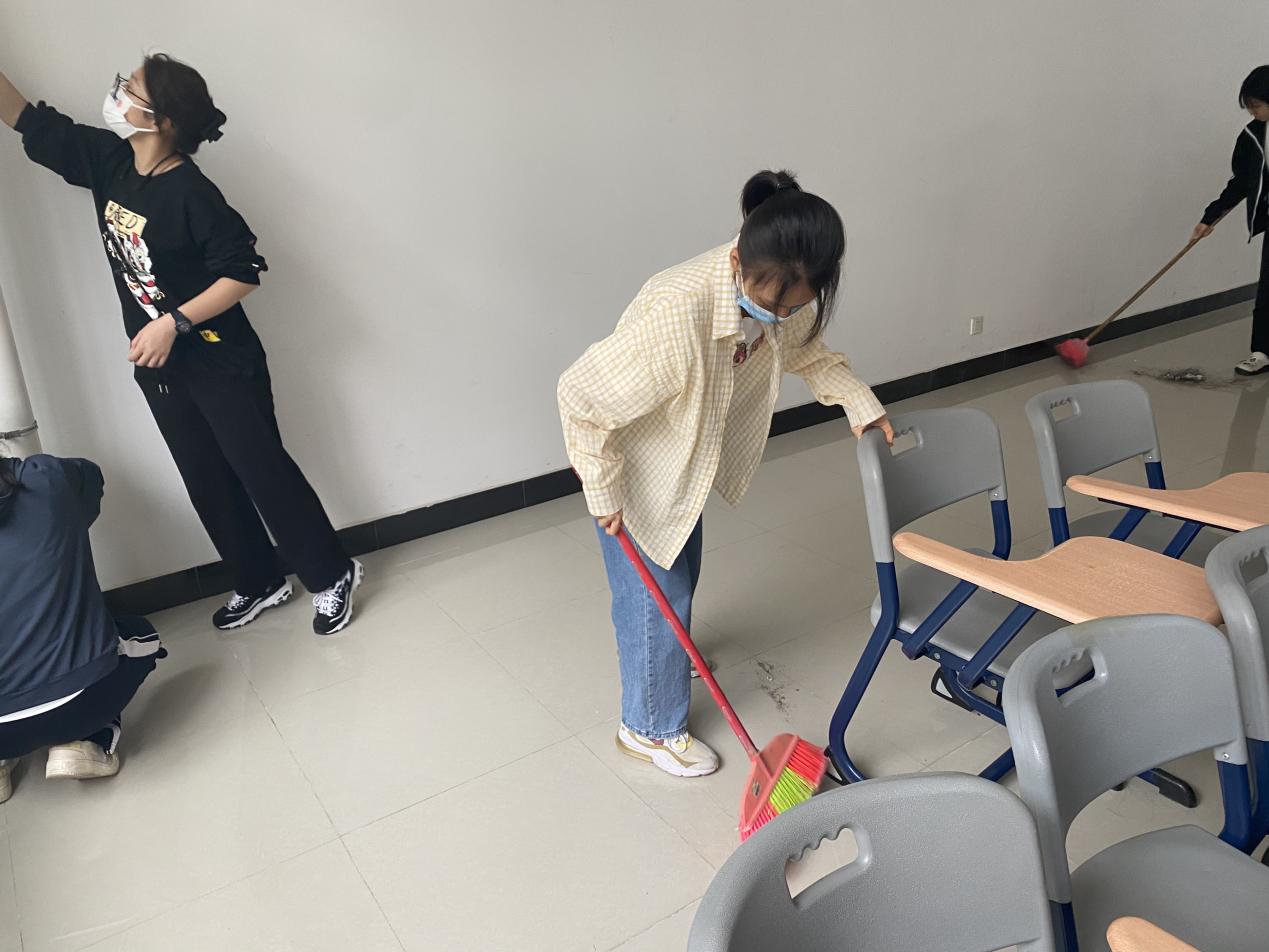 本次社会实践活动校内进行,主要内容是维护和清洁教学楼的卫生环境基础设施。活动以小组的形式开展,一共分为五组,学员们在得知自己的分工后迅速进入指定区域进行打扫,扫地、拖地、清洁抽屉垃圾、摆放桌椅、擦拭围栏等,在学员们的共同努力下,教学楼焕然一新,为全校师生了营造良好的教学环境。