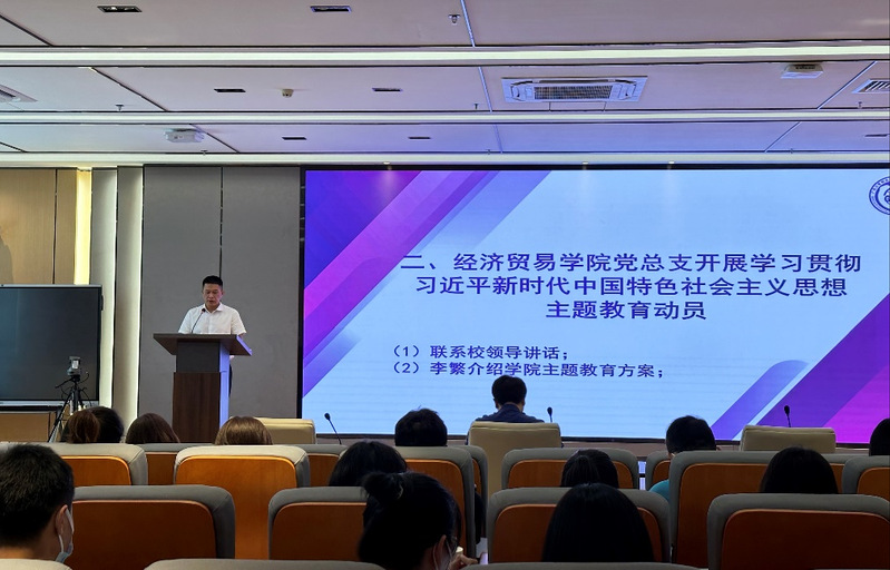 “开展学习贯彻习近平新时代中国特色社会主义思想主题教育,是党中央为全面贯彻党的二十大精神、动员全党同志为完成党的中心任务而团结奋斗所作的重大部署,是深入推进新时代党的建设新的伟大工程的重大部署。”会上,唐毓秋就学习贯彻习近平新时代中国特色社会主义思想主题教育推进工作发表讲话。他强调,经贸学院党总支特别是班子成员要进一步提高政治站位,强化责任担当,狠抓工作落实,确保动作到位、质量提高、效果明显,交出一份实实在在让学校认可、让师生满意的成绩单;全体党员要充分认识本次主题教育的重大意义和总体要求,充分认识本次主题教育要求高、要求细、要求严,以开展主题教育为契机,自觉用习近平新时代中国特色社会主义思想凝心铸魂,在全面学习、全面把握、全面贯彻党的二十大精神上下功夫,在持续贯彻习近平总书记系列重要讲话精神上求实效,以排头兵的姿态、先锋队的担当,牢记嘱托、勇毅前行,坚定不移走好经贸学院高质量发展新路,让习近平新时代中国特色社会主义思想在经贸展现更为绚丽的生动画卷。