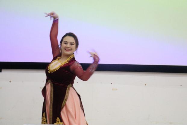期间,李艇老师为大家演唱了《祖国你好》,雄浑而高亢的歌声博得满堂喝彩。来自新疆的组百达·努尔买买提同学为大家表演了新疆舞蹈,曼妙的身姿引来阵阵掌声。