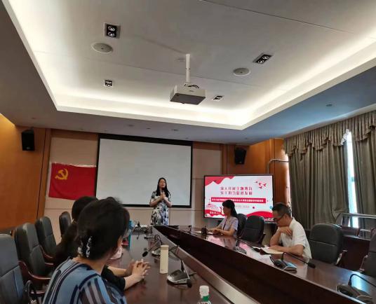 为深入开展学习贯彻习近平新时代中国特色社会主义思想主题教育,坚定理想信念,6月25日,经济贸易学院教师第二党支部书记蒋晶为支部全体党员讲授专题党课。