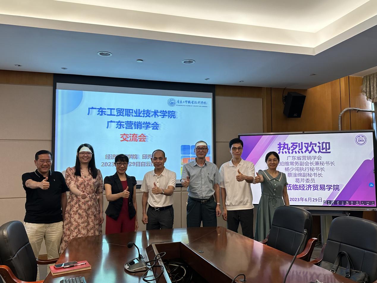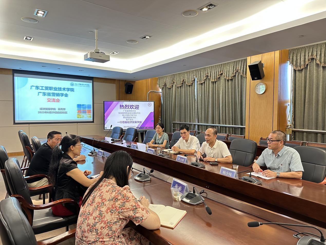 为学习贯彻习近平新时代中国特色社会主义思想,进一步深化学院与学会合作,推进产教融合,推动职业教育高质量发展,6月29日上午,广东营销学会常务副会长兼秘书长张珀维、执行秘书长杨少闯、副秘书长蔡途绵和委员葛芹到访太阳集团城官网1407。经济贸易学院院长邱秀芳、副院长蒋晶、离岗创业教师李政敏副教授热情接待。双方于明德楼1-201会议室举行交流座谈会,会议由邱秀芳主持。