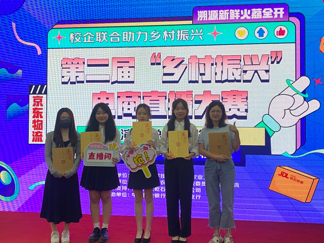 7月3日,由广东省科学技术厅指导,仲恺农业工程学院和京东物流集团共同承办的第二届岭南荔枝节“乡村振兴”电商直播大赛决赛暨总结颁奖仪式圆满落幕。来自全省12所院校的70支参赛队伍经过激烈角逐,决出了一、二、三等奖。其中,由经贸学院电商专业温泽豪、李佳莹、黄雅婵、周莹、陈彩艺5位同学组成的参赛队伍在电商专业教师夏瑜璟、邓妙悉心指导下稳定发挥,凭借出色的专业表现及强大的心理素质荣获本次比赛的二等奖。
