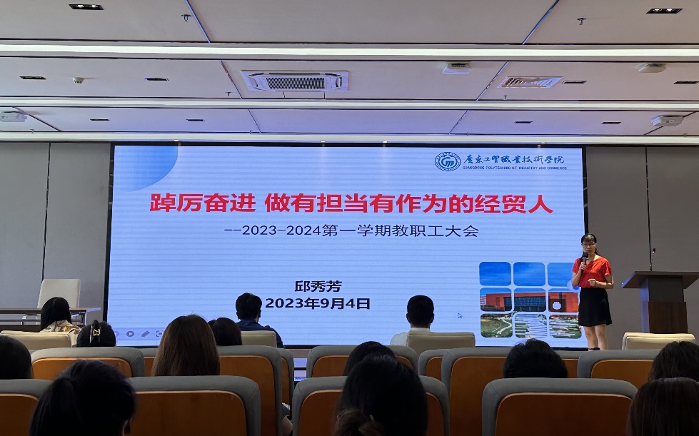 金秋送爽团结奋进结硕果,天高云淡抖擞精神启新航。为认真学习贯彻习近平新时代中国特色社会主义思想,进一步明晰新学期规划,开新局、谋新篇,确保各项工作有序开展,202394日上午,经济贸易学院2023-2024学年第一学期全体教职工大会在白云校区图书信息楼629会议室召开,党委委员、副校长唐毓秋及经贸学院全体教职工出席会议。会议由经贸学院党总支书记李繁主持。