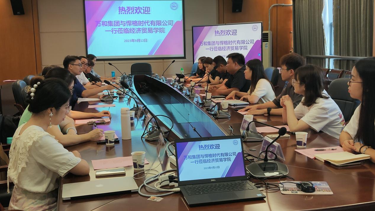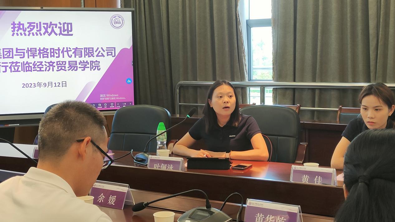 蔡聪介绍了万和集团概况、企业文化、部门职能、工作环境、岗位需求和人才培养策略等,并分享了万和集团校企合作的成功做法与经验。悍格时代人力资源经理叶佩泳也对企业概况、校企合作方向做了详细介绍,并表达了加强合作的意向。