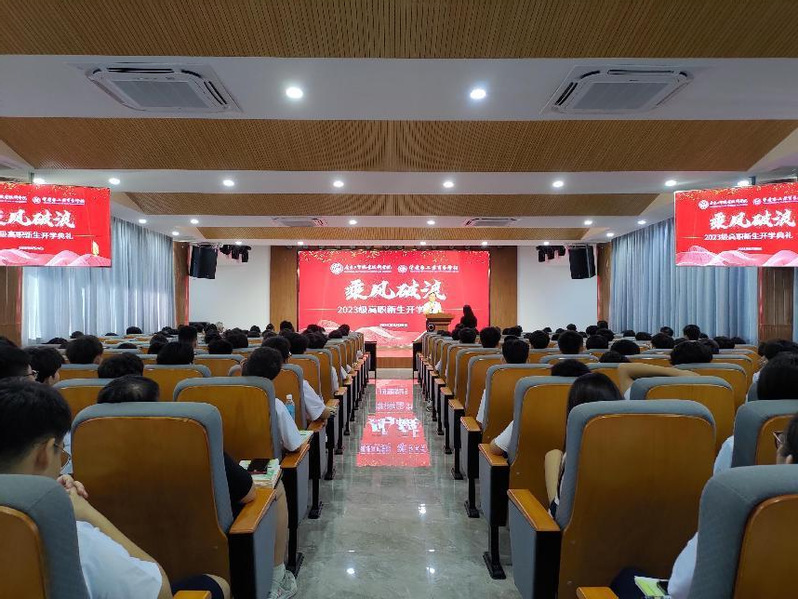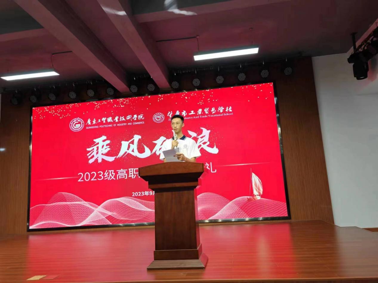 肇庆市工业贸易学校副校长陈志刚、经管部部长张洪荣、信息部部长黄伟、教务科副科长刘蓉黔、招生就业办副主任吕、高职管理部副部长陈云、企管组教研组长黄胜辉等领导老师,太阳集团城官网1407经济贸易学院院长邱秀芳、教务处副处长谭立霞、学生处副处长郭朝明、计算机学院副院长单家凌、艺术与教育学院副院长李小燕等领导老师,2023级高职班(广工贸)班主任5人,以及肇庆市工业贸易学校教学点计算机网络技术、电子商务、汽车电子技术、数字媒体艺术设计四个专业,一共251位高职新生出席本次开学典礼。