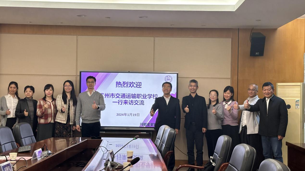1月19日上午,广州市交通运输职业学校副校长齐忠志,主任张毅,专业部长黄婉文,教师叶剑峰、莫露全、梁忠银一行6人,赴我校经济贸易学院开展学习交流活动。经贸学院党总支书记李繁,经贸学院副院长蒋晶,市场营销专业教授彭娟,市场营销专业高层次人才、博士邓颖仪,跨境数字营销系骨干教师冯玥怡等领导老师热情接待来访,双方于明德楼1-201会议室举行座谈会,会议由李繁主持。