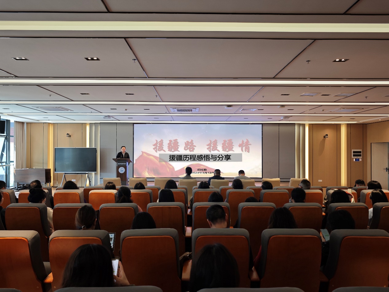 会上,伍炜勤博士汇报援疆工作,分享了他一年来发挥自身、资源和专业优势,为新疆电商发展献策解难、拓宽发展渠道,服务国家战略的情况以及收获、体会和感悟。