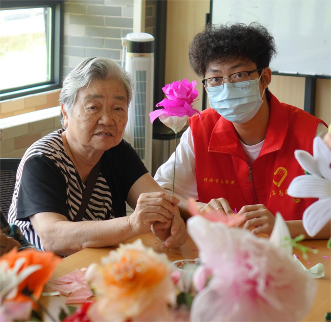 教老人制作花束