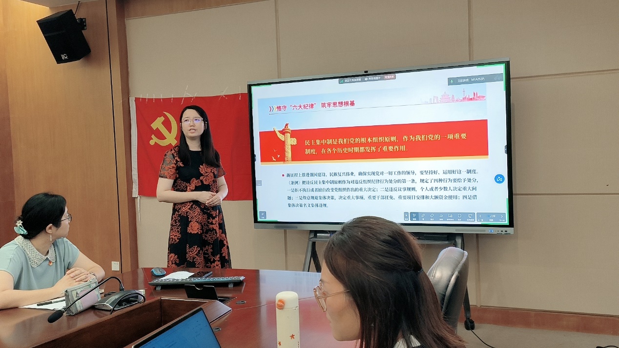 纪律是党的生命线,加强纪律建设是全面从严治党的治本之策。为进一步全面加强党支部的纪律建设,不断深化全体党员教师自我完善、自我革新以及自我提高的能力,推进党规党纪入脑入心,6月25日下午,经济贸易学院教师第二党支部在白云校区明德楼1-201开展党纪学习教育专题活动,党课由教师第二党支部书记蒋晶主讲。