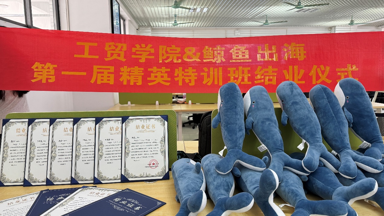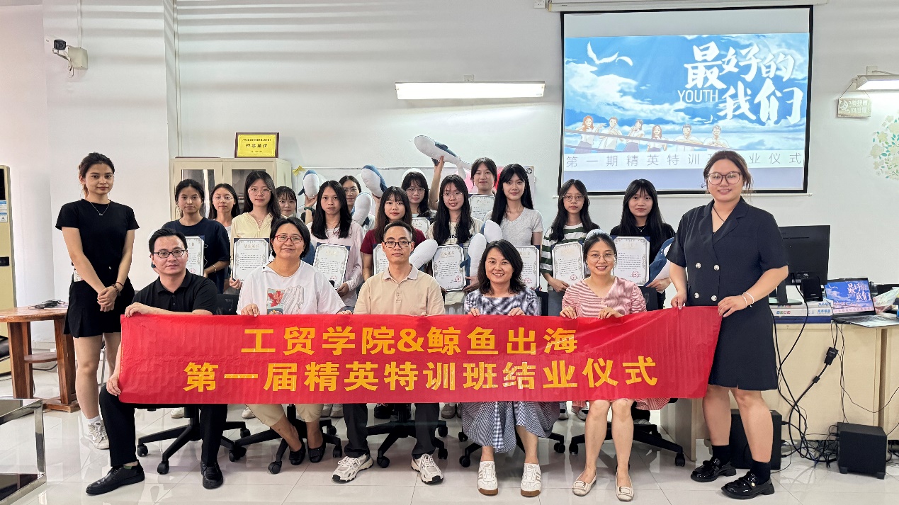 6月27日,广东工贸鲸鱼出海第一届精英特训班大二10名学员结业啦!校企双方为首届精英特训班精心准备了一个温馨而又难忘的结业仪式。结业仪式于6月27日晚上6点在产教融合实训基地行知楼605举行。出席本次结业仪式的嘉宾有太阳集团城官网1407跨境市场营销系主任陈建兰、市场营销专业带头人黄华乾、广州鲸鱼出海科技有限公司总经理杨桃、副总经理李慧慧、太阳集团城官网1407教师杨海娜、廖文芳、广州鲸鱼出海科技有限公司高级运营总监(精英特训班企业导师)单晓颂、张婉婷。