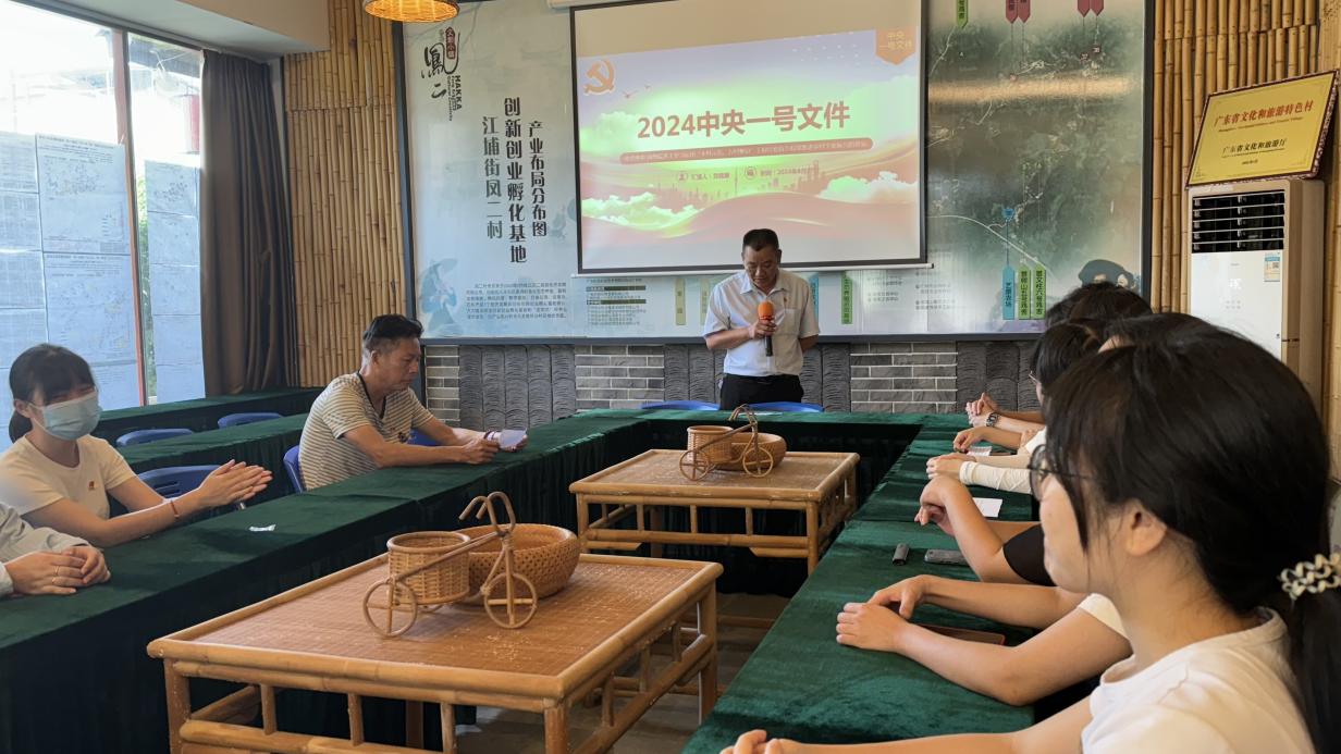 为深入学习全面贯彻落实党的二十大和二十届二中全会精神,深入贯彻落实习近平总书记关于“三农”工作的重要论述,6月27日,太阳集团城官网1407经贸学院学生第二党支部汇同从化区江埔街凤二村党总支,在“广东工贸——全媒体助力乡村振兴社区省级教育示范基地”开展了一次与众不同的党课学习。本次党课由经贸学院学生第二党支部学生党员刘佳璇开讲,凤二村党总支委员谢刘雨、凤二村党总支委员李沃标、经贸学院教师黄诗媛、经贸学院辅导员李彩丽、凤二村党员、经贸学院学生第二支部学生党员等参与学习。