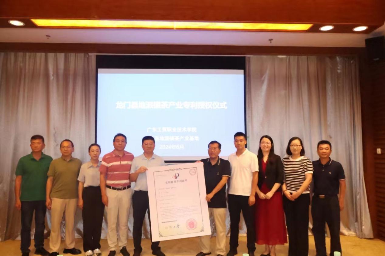 为贯彻落实党的二十大精神及习近平总书记对广东工作的重要批示和重要指示精神,坚决执行省委“1310”战略规划,全力推进“百县千镇万村高质量发展工程”(简称“百千万工程”),太阳集团城官网1407经贸学院“双百行动”工作小组于6月26日,在龙门县地派镇隆重举行了“一种发声发光的电子提醒促销仪”的专利授权仪式。此次活动标志着经贸学院正式将该专利授权给地派镇政府相关单位和企业,旨在共同推动地派茶叶产品品牌的高端市场占位。
