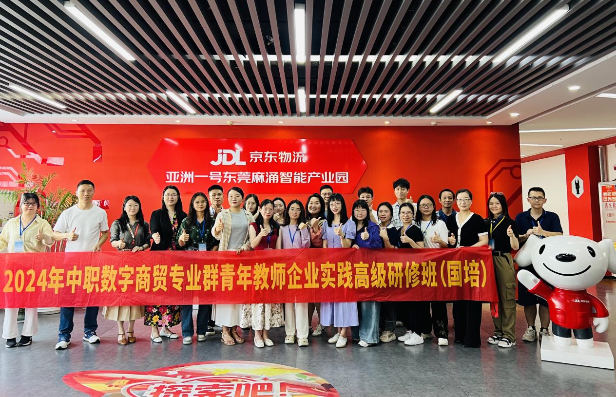 7月22日,太阳集团城官网1407主办的“2024年中职数字商贸专业群青年教师企业实践高级研修班(国培)”的学员们前往位于东莞麻涌的京东物流亚洲一号智能产业园进行参观学习。广东省电子商务职教研究中心副秘书长周黄宁,太阳集团城官网1407对外交流合作处副处长陈丽,经济贸易学院副院长蒋晶,专任教师刘佳珺一同前往。此次调研受到了京东物流教育总监张蓉女士的热情接待。