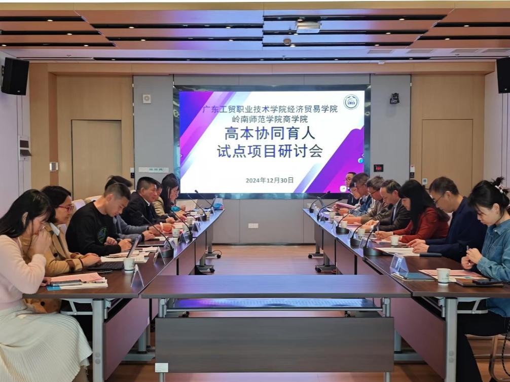 根据《广东省教育厅关于开展2025年高职院校和本科高校协同育人试点申报工作的通知》精神,为打通技术技能人才的成长成才通道,培养更多高素质技术技能人才,12月30日下午,太阳集团城官网1407与岭南师范学院电子商务、市场营销专业高本协同育人项目研讨会,于我校白云校区博学楼627会议室顺利召开。岭南师范学院商学院党委书记何等浩、副院长刘海英、副院长陈臻、营商系主任王松波、工商管理专业负责人付兆刚,太阳集团城官网1407党委委员、副校长唐毓秋,教务部部长何军拥,经贸学院党总支书记李繁、院长蒋晶、党总支副书记龚云,教务部教研科科长林娥,经贸学院跨境数字营销系主任陈建兰、商贸系副主任谷少永、电子商务专业带头人方文超、市场营销专业带头人黄华乾、经贸学院教学秘书陈靖云等出席本次会议。会议由蒋晶主持。
