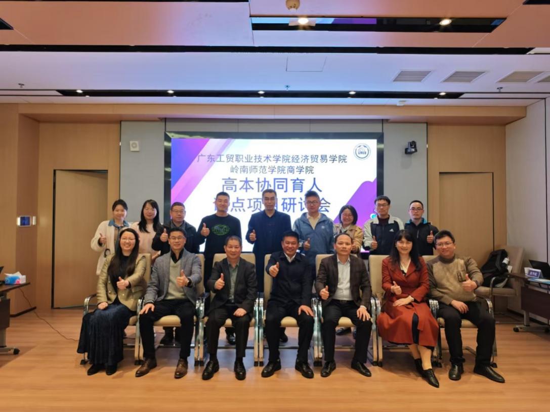 太阳集团城官网1407经济贸易学院和岭南师范学院商学院领导老师分别就本学院有关情况进行介绍,并深入开展了关于电子商务和市场营销专业三二分段专升本协同育人试点项目高本衔接合作研讨。双方就如何发挥高职院校实习实训平台优势、行业特色鲜明的普通高校师资和人才培养优势;如何协同发力,突出高职院校、普通高校全方位、全过程、各环节协同,实现职普深度融通,相互促协同育人的合作模式以及人才培养方案的细节深入广泛交换意见,并达成共识。