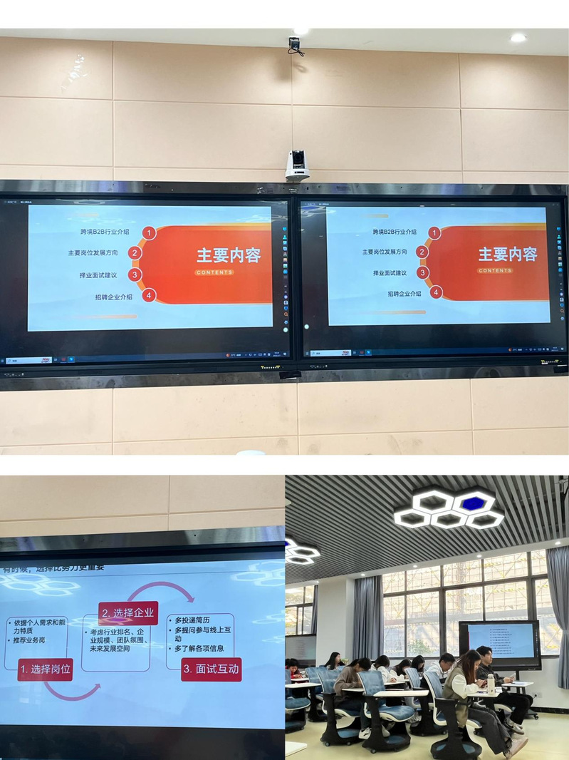 本次双选会旨在为学生和企业搭建沟通桥梁,提供更多对口就业机会,促进学生高质量就业。会议内容围绕跨境B2B行业介绍、主要岗位发展方向、择业面试建议和招聘企业介绍四个方面展开。阿里巴巴共推荐了10家广州本地国际站商家,涵盖外贸、建材、汽车配件、化妆品等多个行业,共计超过80个外贸相关岗位,为学生提供了广阔的就业选择。